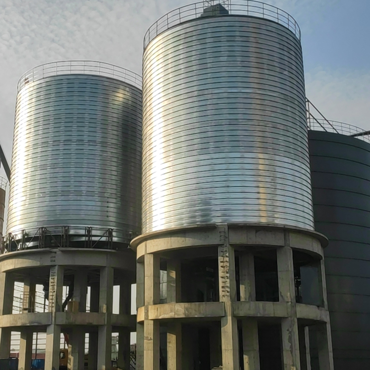 螺旋鋼板倉倉底通常分為平底和錐底2種辦法,從技能和運用的視點啟航,當然以選用錐底倉為宜,因為它具有不存糧,不需配備清倉設備等利益。可是,從經濟視點思考,錐底倉的運用則存在著必定的綁縛性,實習證明,錐底倉只適用于直徑10m以下,倉容不跨過1 500t的場合,大于此直徑的螺旋鋼板倉則根據倉內物料的天然流角而斷定的,物料的天然流角越小,錐體的高度則越大,而糧食的天然流角通常在40度分配,所以當螺旋鋼板倉直徑較大時,根底支撐方案的上梁大大增高。